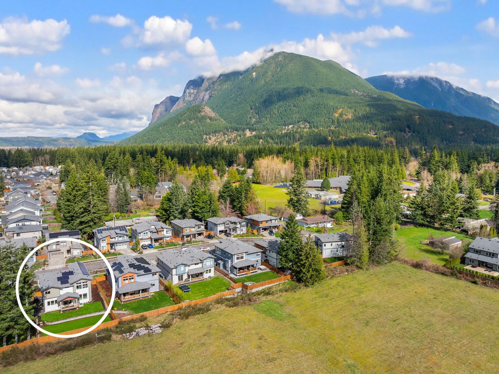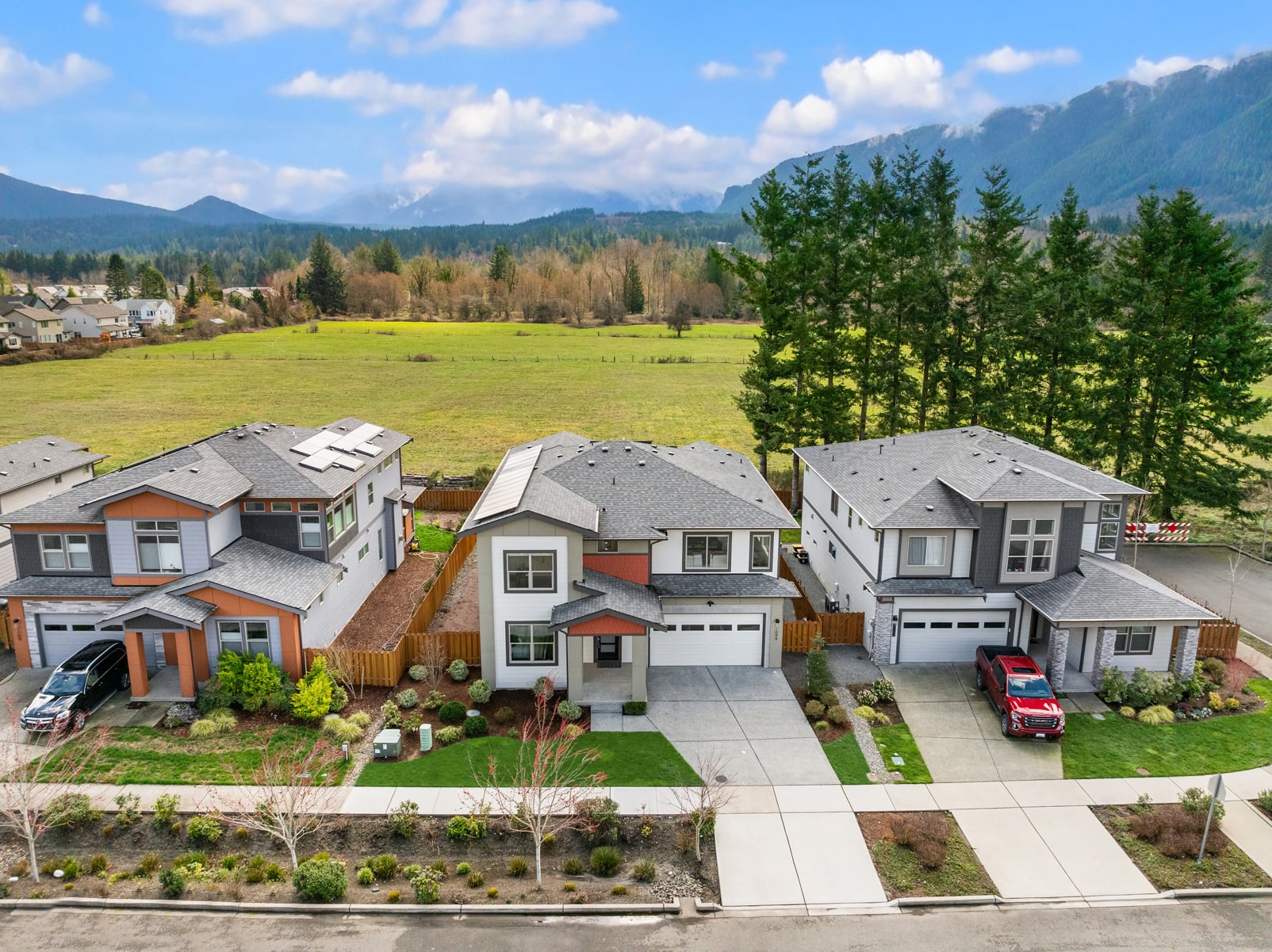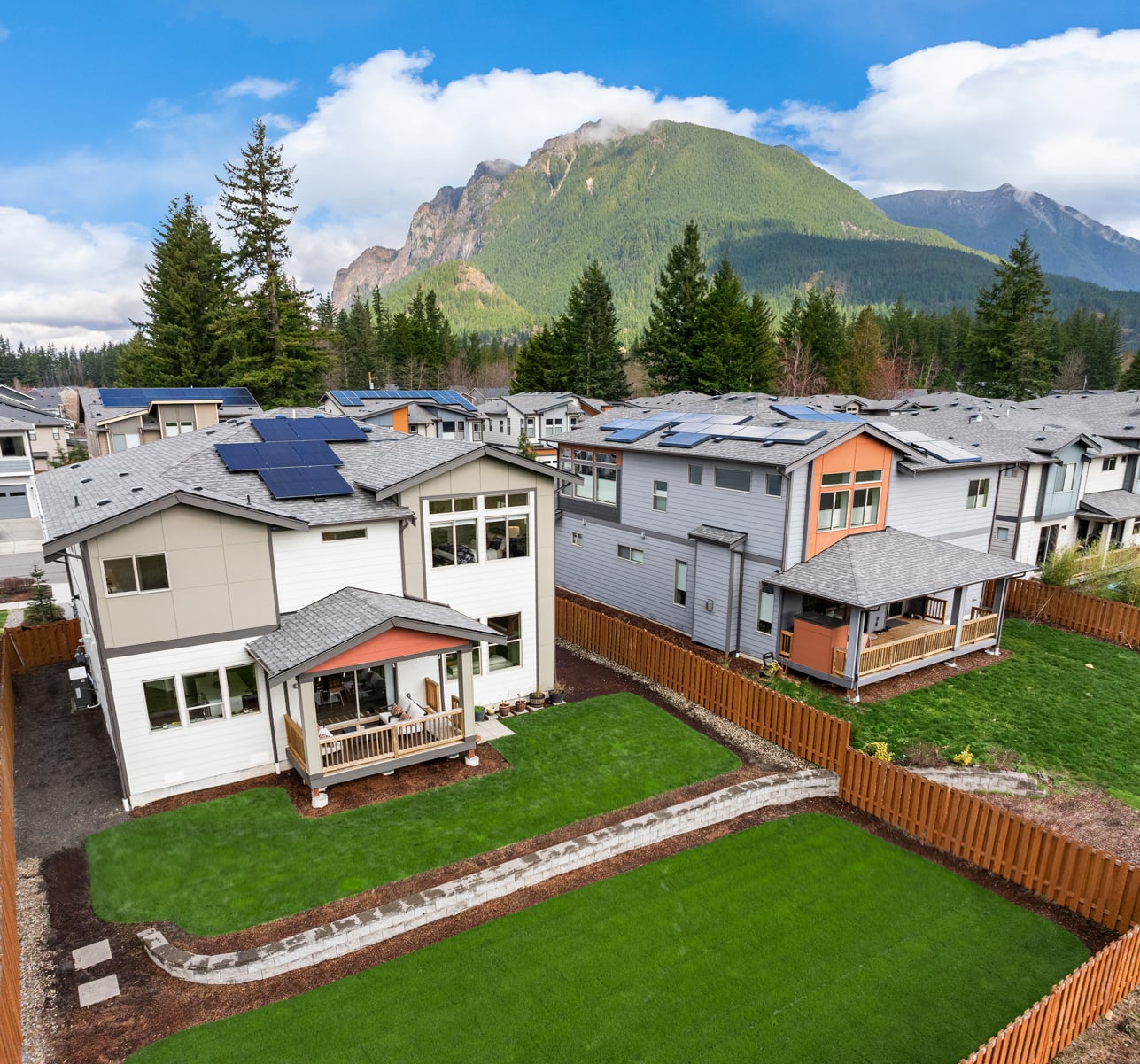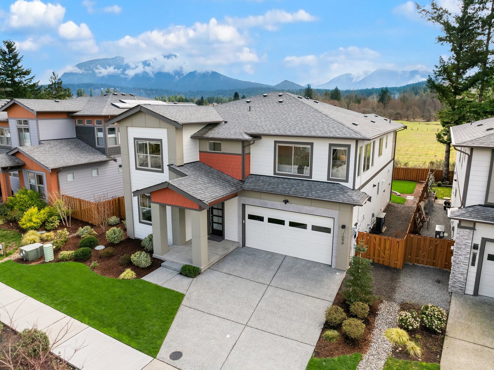 Sweeping Cascade mountain views captivate every angle while nearby Mount Si steals the show from this better than new, innovatively-upgraded, modern luxury masterpiece! Brilliantly designed, architecturally evolved & built to last in 2021 with sleek high-end contemporary finishes & sophisticated style. Striking curb appeal layered in artistic textured accents with manicured grounds, grand covered porch & impressive foyer entry. Tall ceilings, wide-planked hardwoods & expansive view windows adorn the 3,488sf, light-filled open-concept layout. Spacious dream kitchen dazzles with backsplash windows, full-height glass tile accents, decorative range hood, walk-in pantry & sprawling centerpiece island. Family room with gas fireplace & stunning horizontal rail staircase opens to generous dining space & covered heated deck. Dramatic primary suite with sensational views, dual walk-in closets & ultra-lavish 5-piece bath. Massive double-door upstairs bonus room wrapped in tall windows. Main floor 5th bedroom/secondary ensuite, ideal for multi-generational living. Mudroom with built-in storage bench + high-efficiency gas furnace, tankless water heater, comprehensive security system, high-tech wiring with ceiling AP's, cost-saving solar panels, EV charger & cutting-edge Tesla Powerwall whole home battery backup system. Premium 7,685sf lot with newly landscaped yard backed to unobstructed open space. Moments to historical downtown North Bend & world-renowned outdoor attractions!
