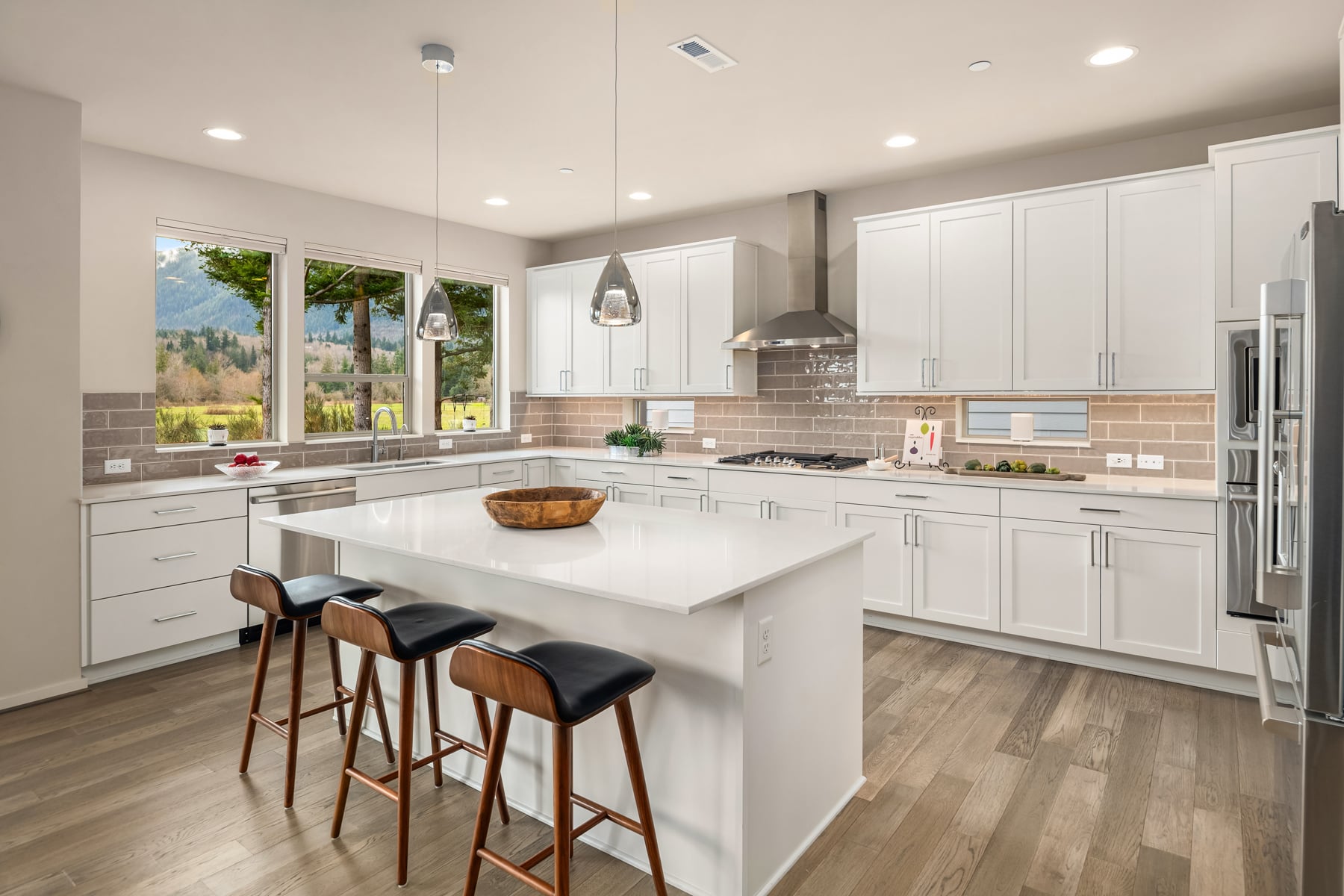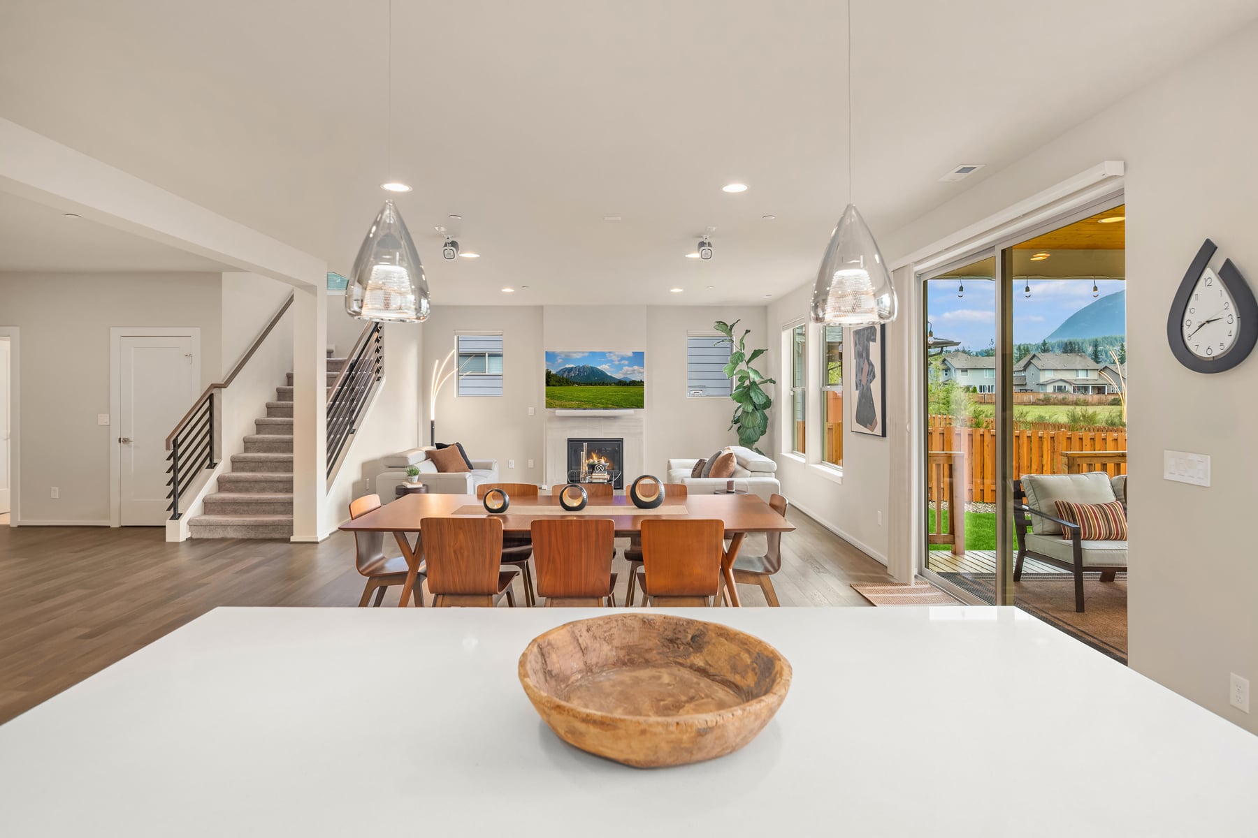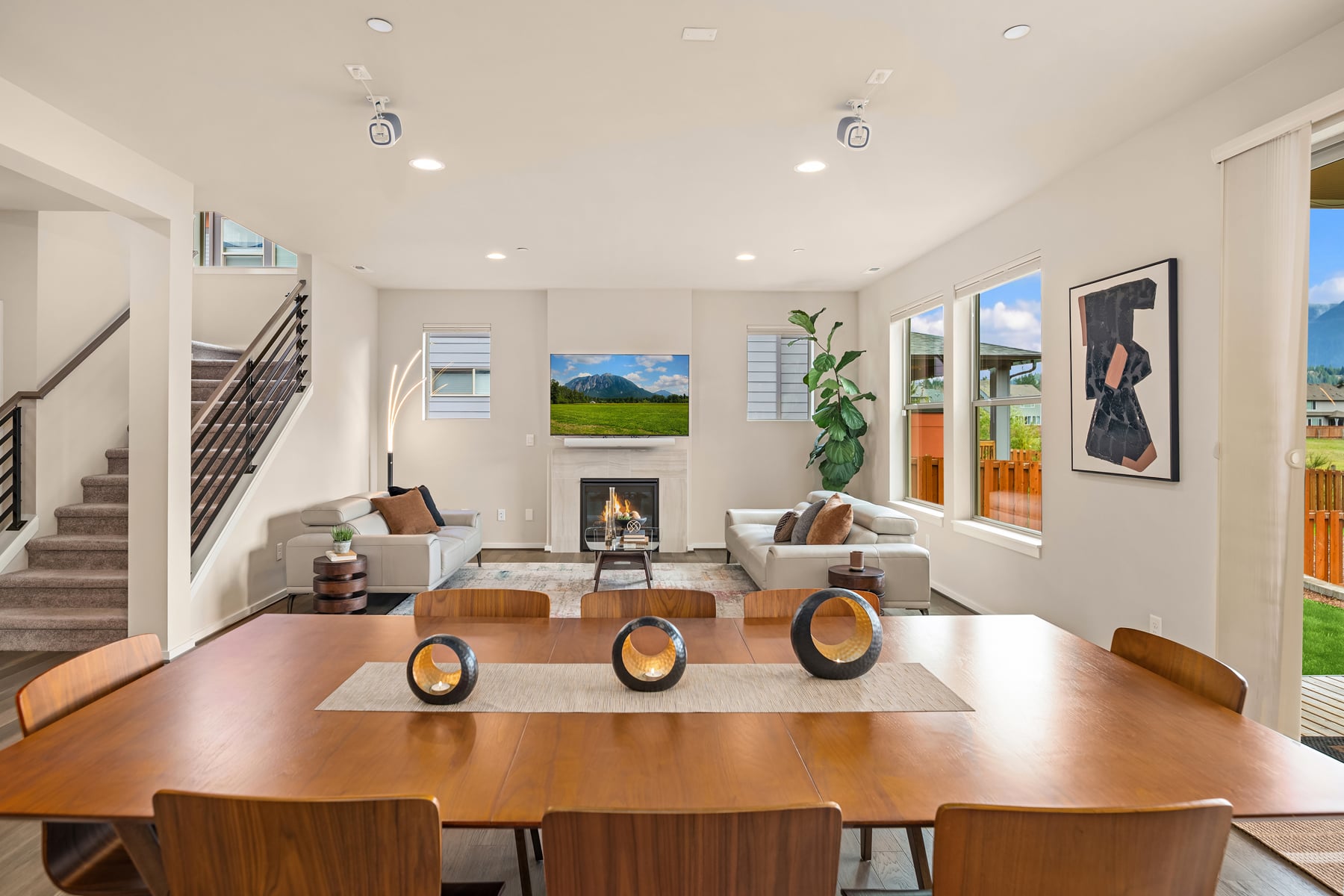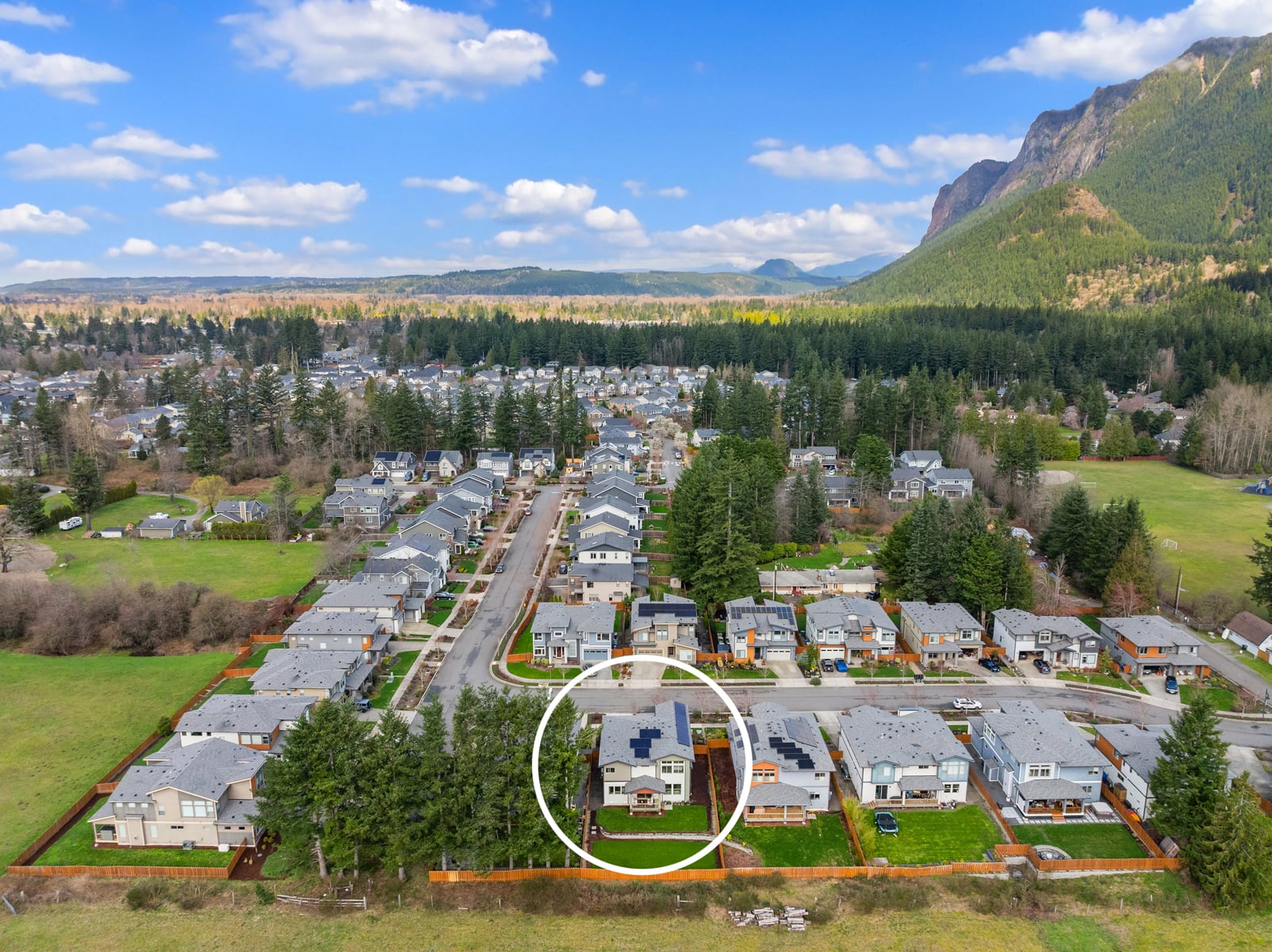 Sweeping Cascade mountain views captivate every angle while nearby Mount Si steals the show from this better than new, innovatively-upgraded, modern luxury masterpiece! Brilliantly designed, architecturally evolved & built to last in 2021 with sleek high-end contemporary finishes & sophisticated style. Striking curb appeal layered in artistic textured accents with manicured grounds, grand covered porch & impressive foyer entry. Tall ceilings, wide-planked hardwoods & expansive view windows adorn the 3,488sf, light-filled open-concept layout. Spacious dream kitchen dazzles with backsplash windows, full-height glass tile accents, decorative range hood, walk-in pantry & sprawling centerpiece island. Family room with gas fireplace & stunning horizontal rail staircase opens to generous dining space & covered heated deck. Dramatic primary suite with sensational views, dual walk-in closets & ultra-lavish 5-piece bath. Massive double-door upstairs bonus room wrapped in tall windows. Main floor 5th bedroom/secondary ensuite, ideal for multi-generational living. Mudroom with built-in storage bench + high-efficiency gas furnace, tankless water heater, comprehensive security system, high-tech wiring with ceiling AP's, cost-saving solar panels, EV charger & cutting-edge Tesla Powerwall whole home battery backup system. Premium 7,685sf lot with newly landscaped yard backed to unobstructed open space. Moments to historical downtown North Bend & world-renowned outdoor attractions!