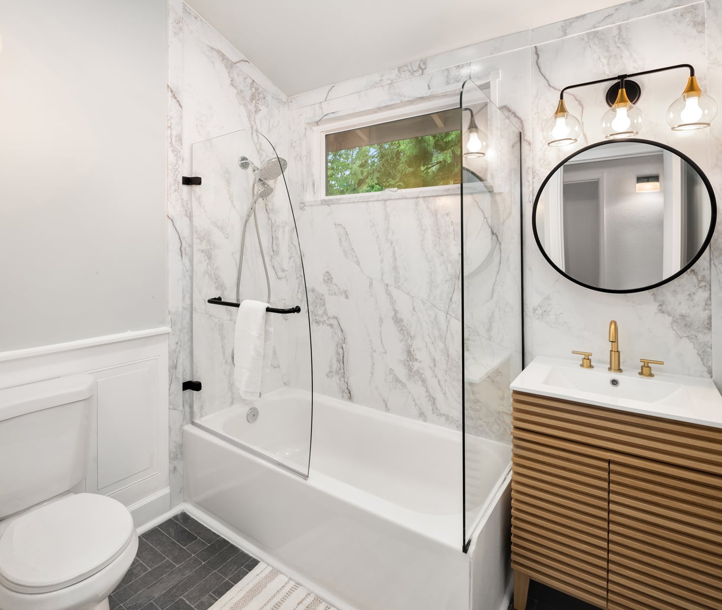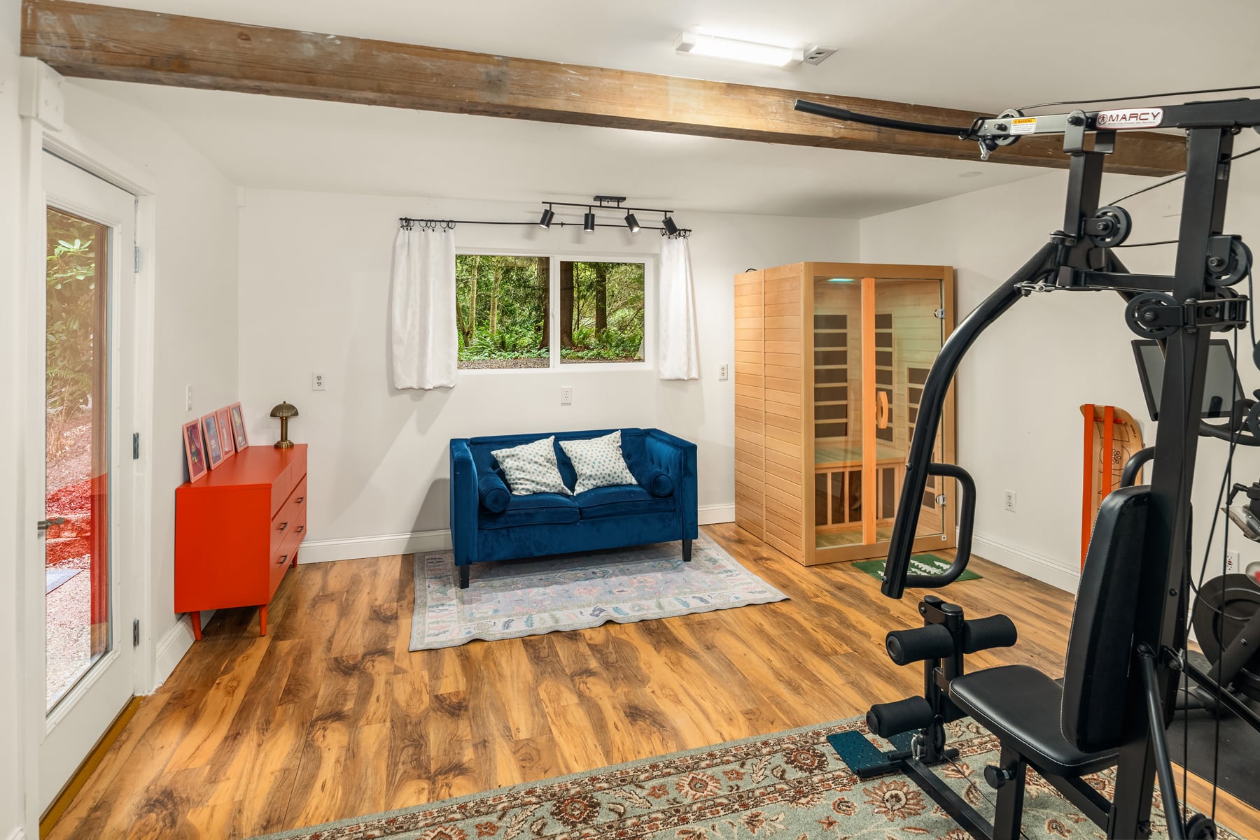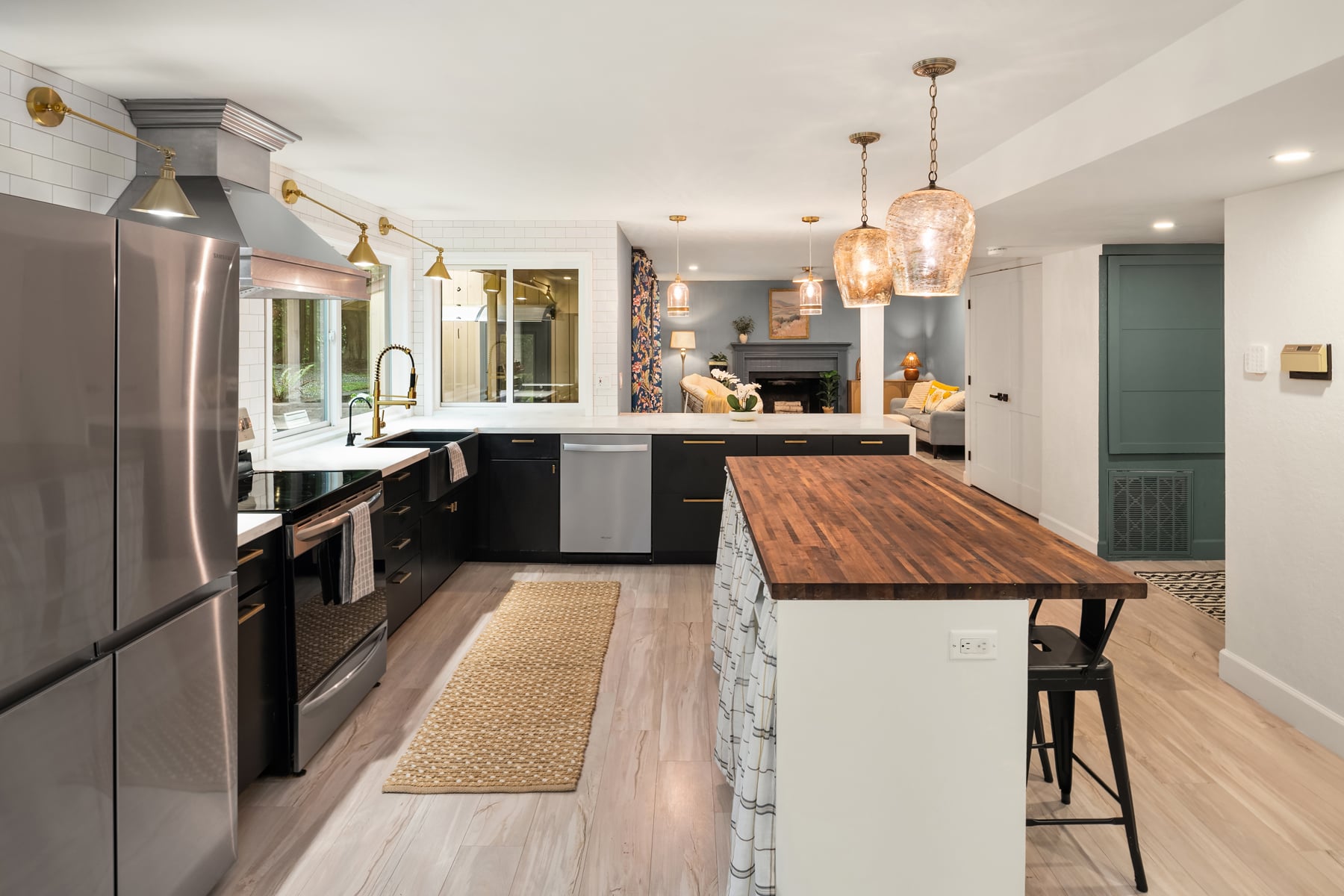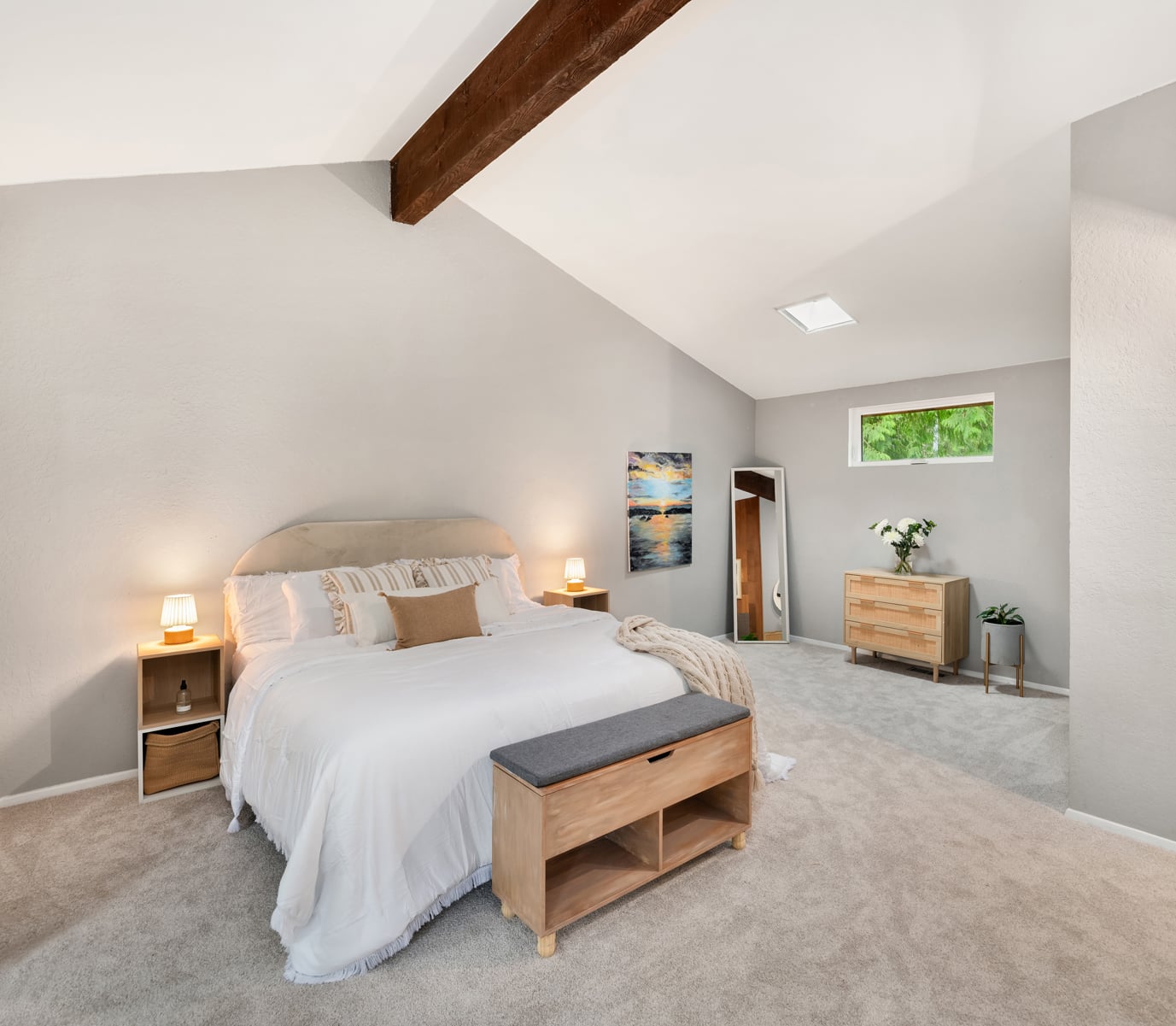 Shy Acre Wonderland ~ Privately nestled down on a long wooded drive at the end of a cul-de-sac in coveted Wingate at Picnic Point, this northwest contemporary stunner dazzles with captivating curb appeal in a fairy tale setting with high-end modern upgrades throughout! Boasting dramatic architecture wrapped in windows with soaring open beam ceilings & breathtaking forest views at every turn. Brilliantly reimagined, the 2,046sf open concept two-story features an irresistible designer kitchen with sleek black cabinets, waterfall-edge quartz counters, custom steel hood, satin brass accents, wrap-around wall-to-wall tile backsplash, center island bar, exquisite hand blown Italian pendants & Bocchi Fireclay apron sink flanked by family room with wood-burning fireplace & dining space with slider to sun deck. Spacious vaulted living room with clearstory windows & open rail staircase. Magnificent primary suite with cathedral ceilings, towering fireplace, sitting area, walk-in closet, lavish tiled bath with skylight & extended covered balcony. Generous vaulted bedrooms & remodeled baths + secret den/bonus room off the 833sf 3-car dream garage. A turn-key masterpiece with gorgeous wide-planked LVP floors, new plush carpets, upscale millwork & fresh paint throughout. Secluded backyard sanctuary backed to lush evergreens features sprawling entertainment patio, fire pit, premium hot tub & wooded hiking trails. Just a short walk to Serene Lake Elementary. You'll love it here. Welcome home!