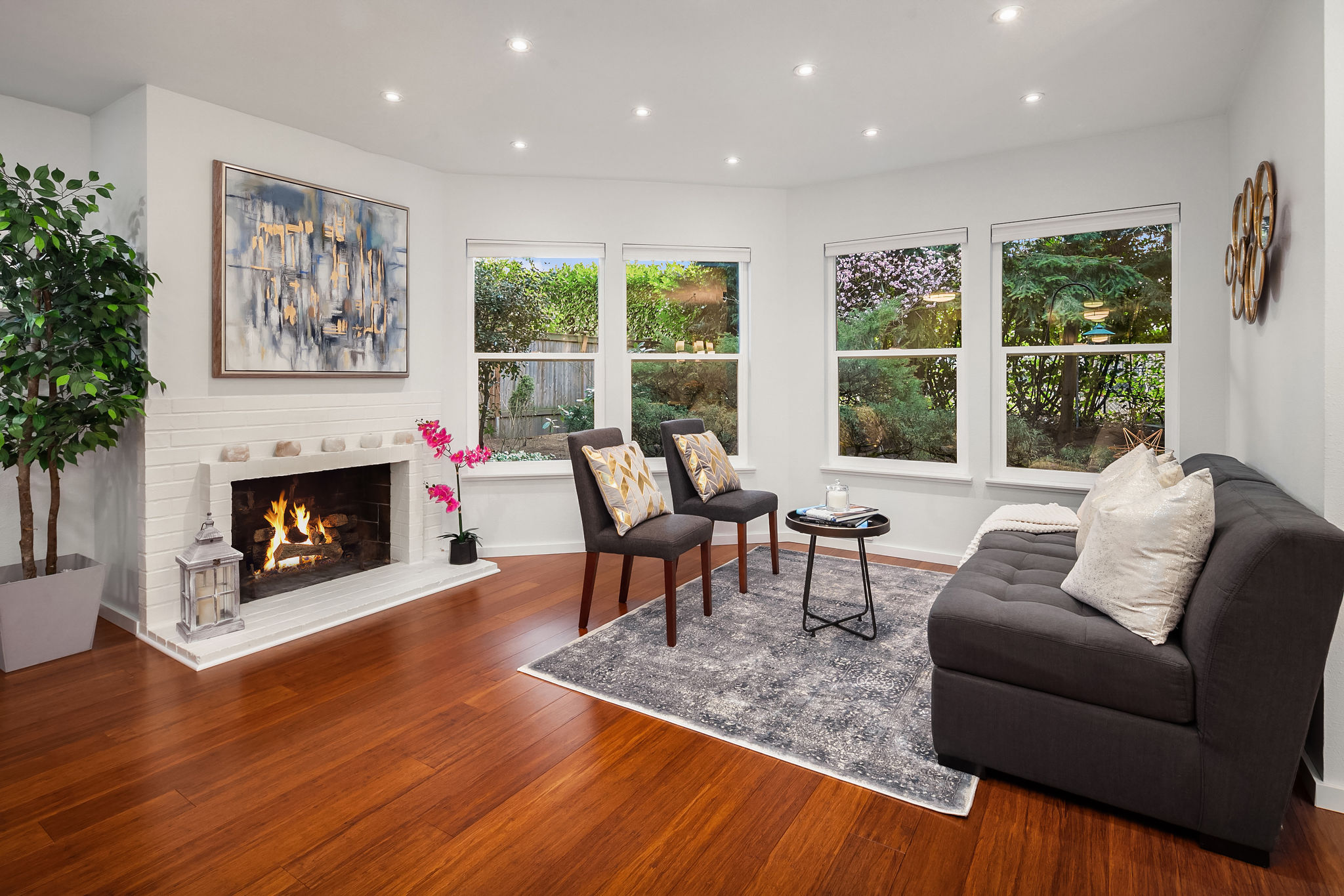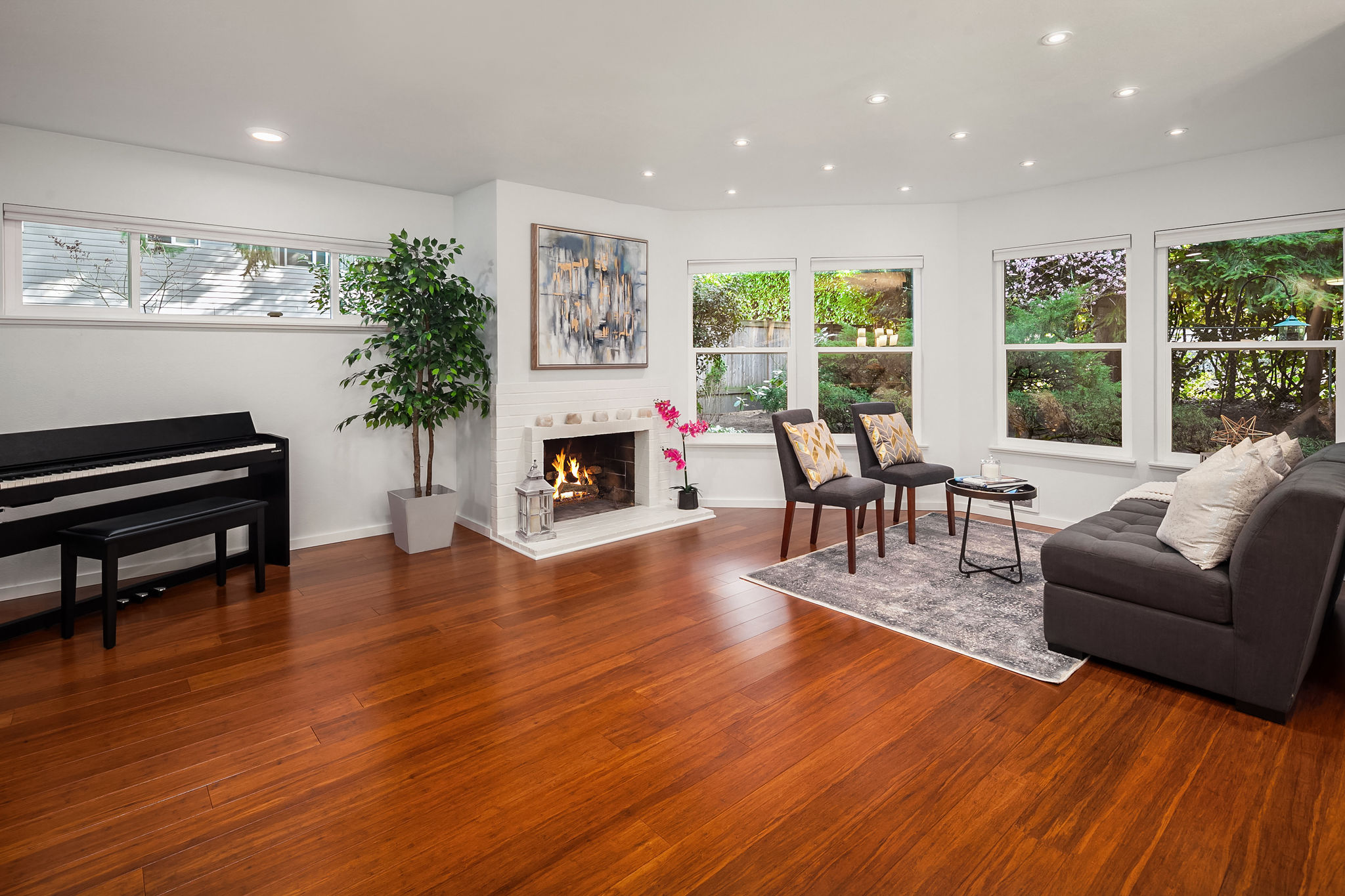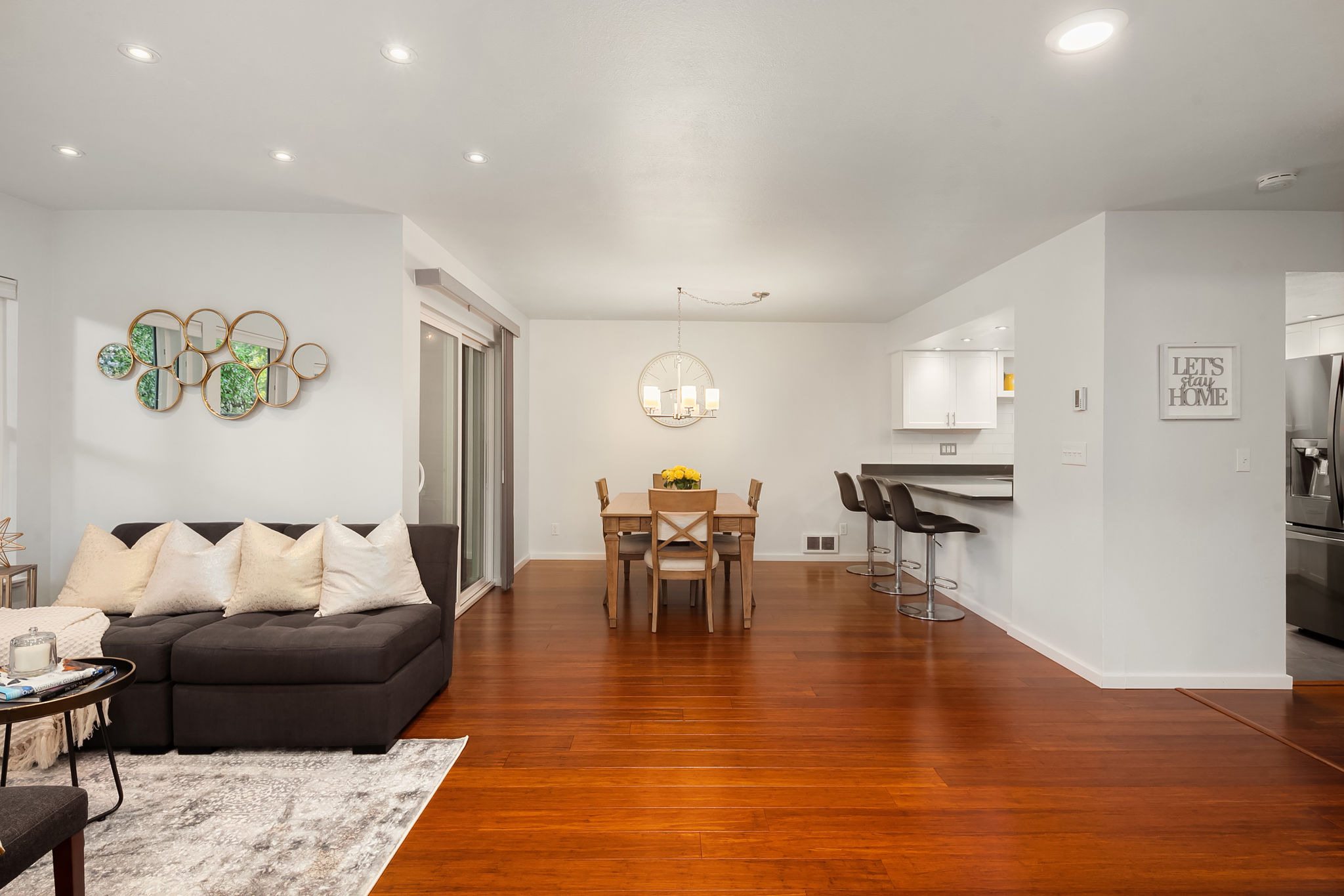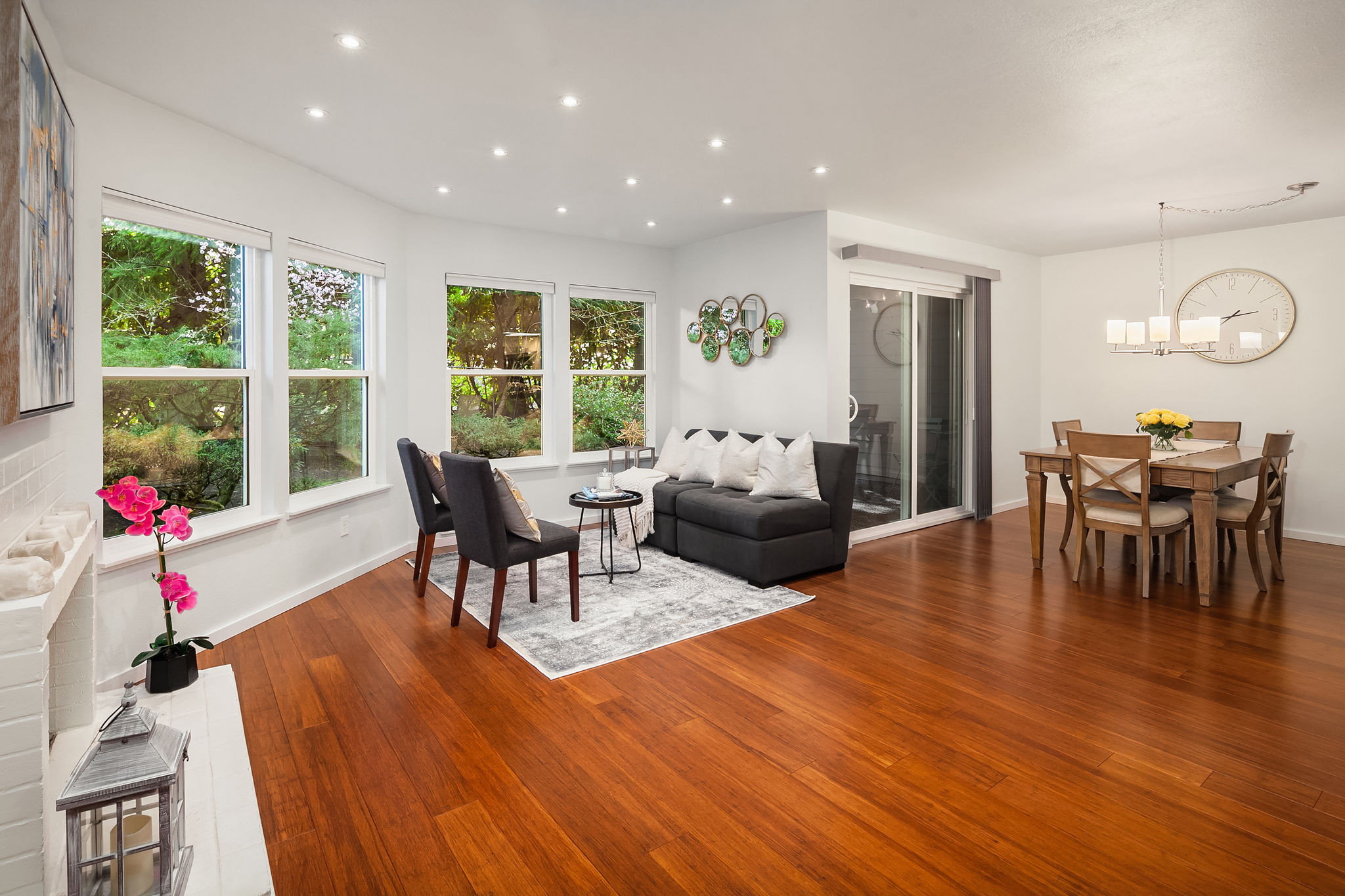 14651 NE 40th ST # F5 Bellevue, WA 98007 - Tucked Away on a Gorgeous Private Garden Next to Microsoft, this Freshly Remodeled & Spaciously Designed Ground Floor End-Unit Does Not Disappoint. Over $70k in Luxury Upgrades: Bamboo Hardwoods, Heated Tile Floors, Recessed Museum Lighting on Dimmers & So Much More. Stunning Kitchen with Quartz Counters, Full Backsplash, Self-Closing Cabinetry, Euro-Style Pulls,  Stainless Steel Appliances, Heated Tile Floors (worth repeating) & Big Breakfast Bar Open to Dining Room with Covered Patio. Grand-Sized Living Room with Wall to Wall Windows, Roaring Fireplace & Constellation Lighting. Master Suite with Lavishly Tiled Bath. Huge Laundry Room with Utility Sink & Storage + Extra Storage in Carport. Community Clubhouse with Outdoor Pool. Coveted Bellevue Schools!