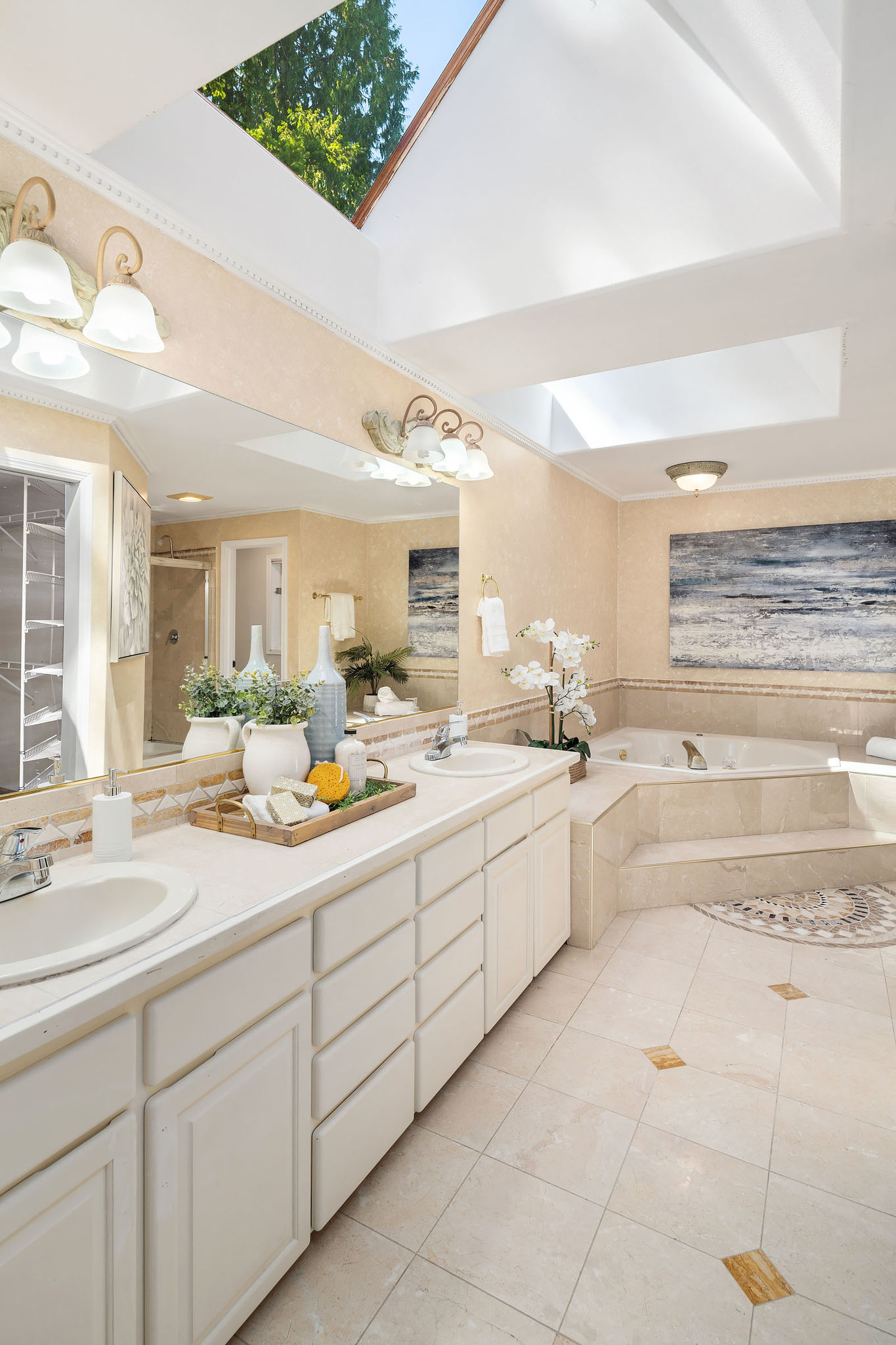 26015 SE 34th St Sammamish, WA 98075 - Sophisticated Elegance ~ Majestically situated down a long luxurious driveway on a private park-like 1/2 acre oasis fortified by towering evergreens & lush grounds, this timeless Burnstead estate in well-established Tibbetts Station at Beaver Lake is a stunning architectural masterpiece! Soaring brick double door entry leads to grand foyer with opulent open-rail staircase & balcony. Vaulted ceilings, oak hardwoods & ornate millwork throughout. Signature extra-spacious 2-story floor plan with 4 bedrooms, 2.5 baths + office, formal entertaining spaces & gourmet kitchen with walk-in pantry & solarium breakfast nook open to family room with 2nd fireplace & built-in bookcases. Sumptuous primary suite with lavish 5-piece marble bath & large walk-in closet. Sprawling backyard with full-length multi-level deck & hot tub. Presidential roof, new furnace, new luxe carpets & fresh paint. Oversized 3-car garage with ample storage. Across the street from neighborhood park with playground & tennis courts. Sought-After Issaquah Schools!