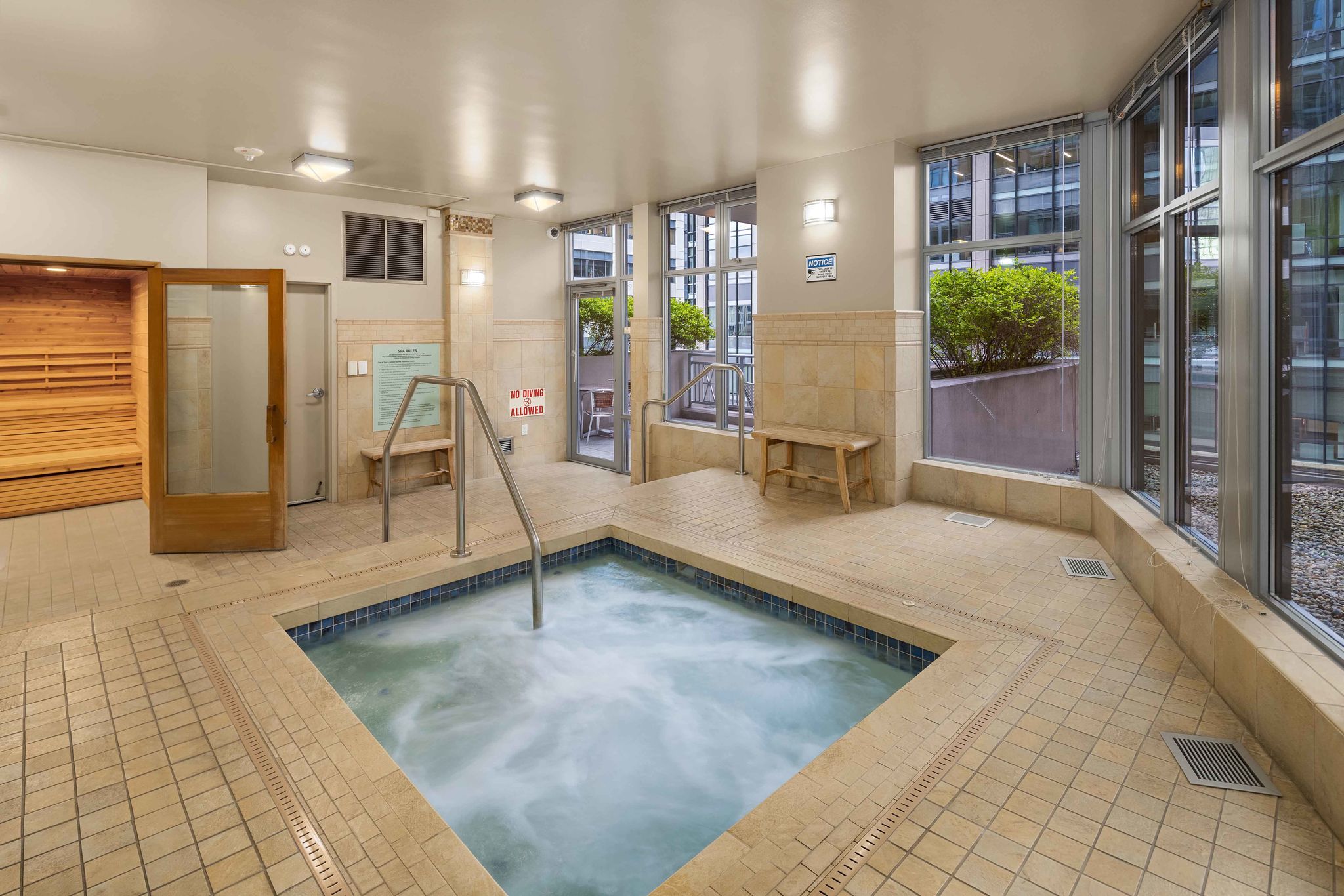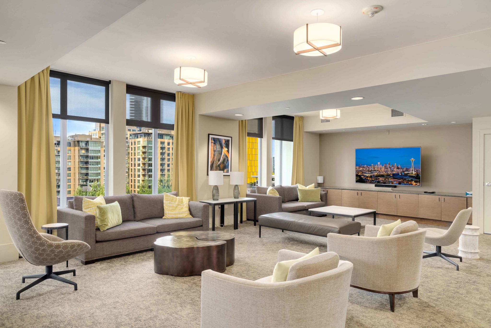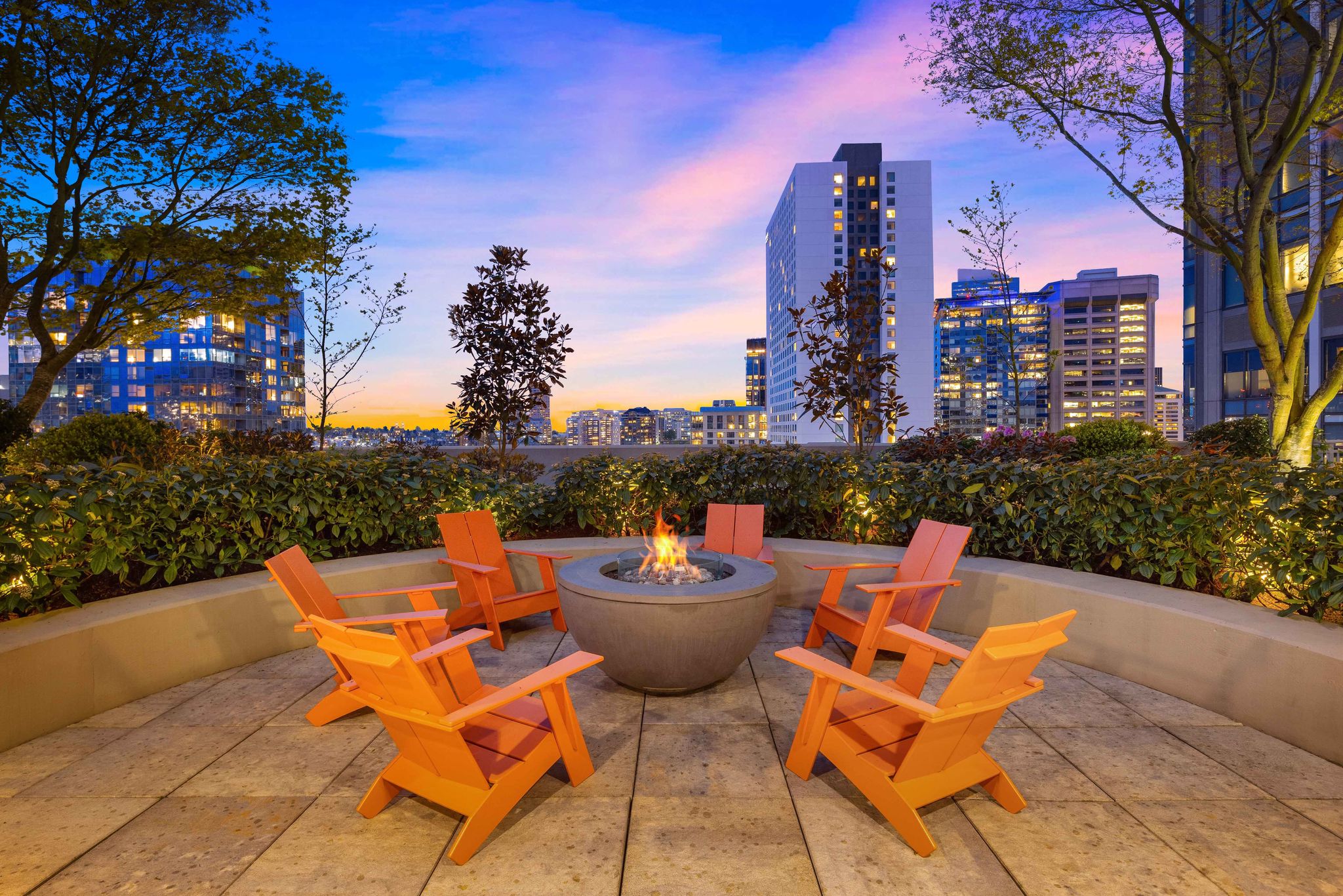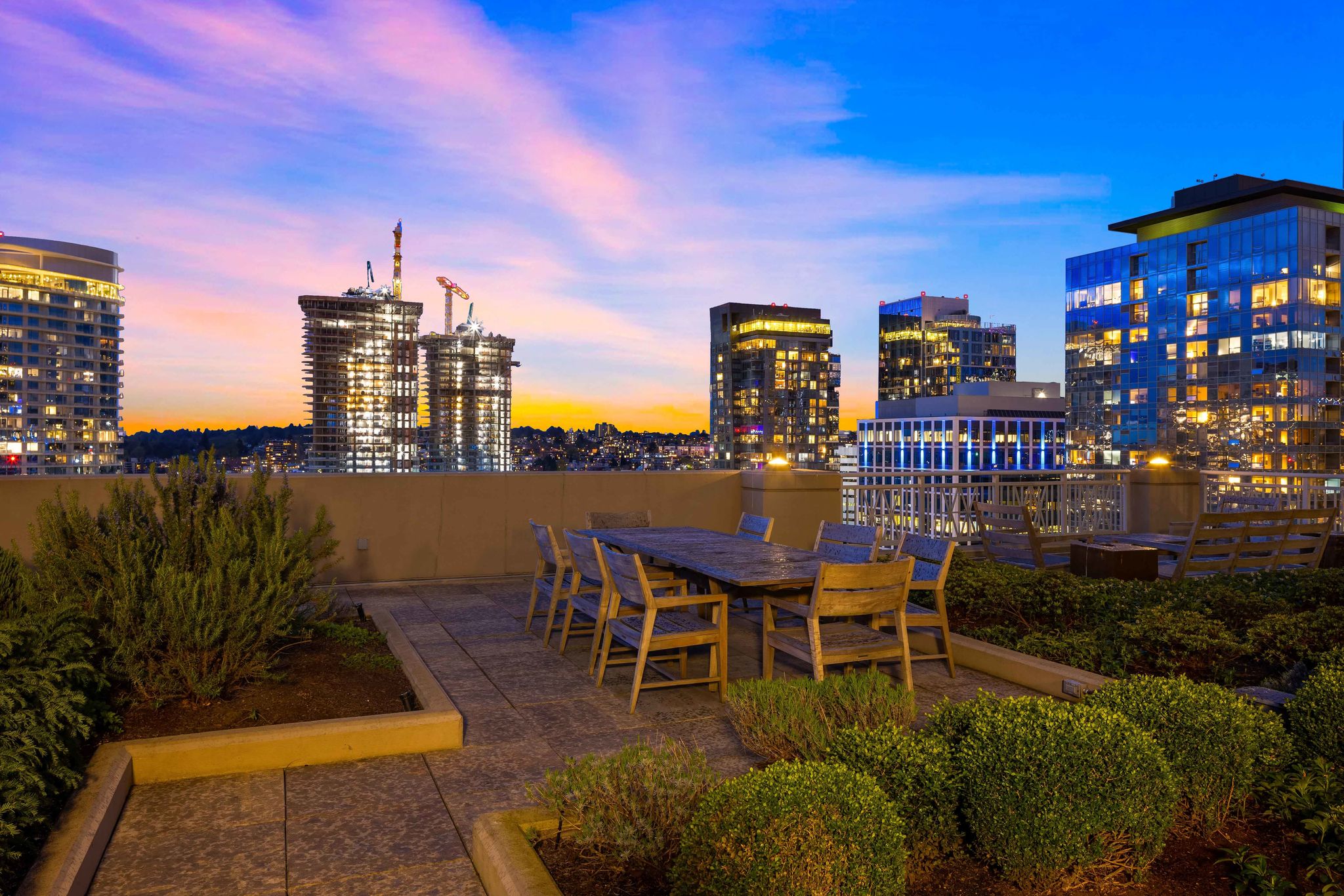819 Virginia St #3101 Seattle, WA 98101 - Spectacularly perched way up on the 31st floor in Denny Triangle's glamorous Cosmopolitan with sprawling northwesterly views of Lake Union, Queen Anne hill, Olympic Mountains & glowing cityscapes, you'll be living it up in contemporary luxury in this elegantly upgraded 966sf masterpiece! An entertainers dream showcasing rich handscraped hardwoods, stunning walls of windows, grand living room with fireplace & modern kitchen with calacatta quartz counters, full height backsplash & gas stove. Glitzy foyer opens to den/office with built-in desk & shelving. Primary suite with romantic balcony & spacious walk-in closet with organizers. Indulging tiled bath with dual raised vessel sinks. Prime park spot & additional storage space. Highrise amenities: 24hr concierge, fitness center, spa/sauna, clubroom, lounge, rooftop garden, guest suite, business center & more!