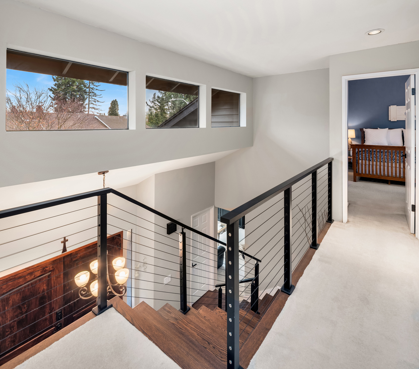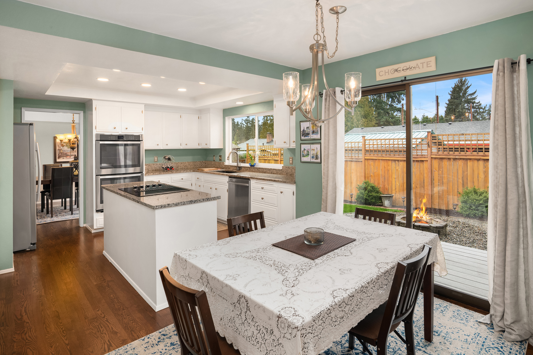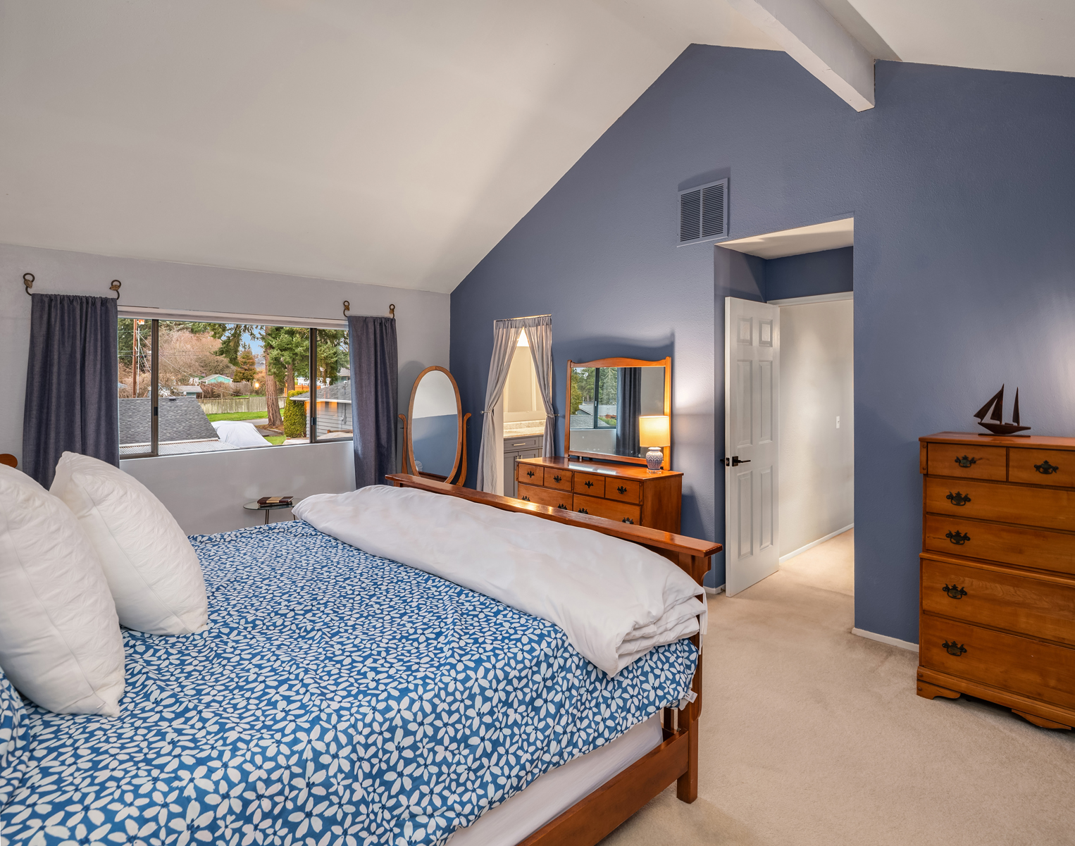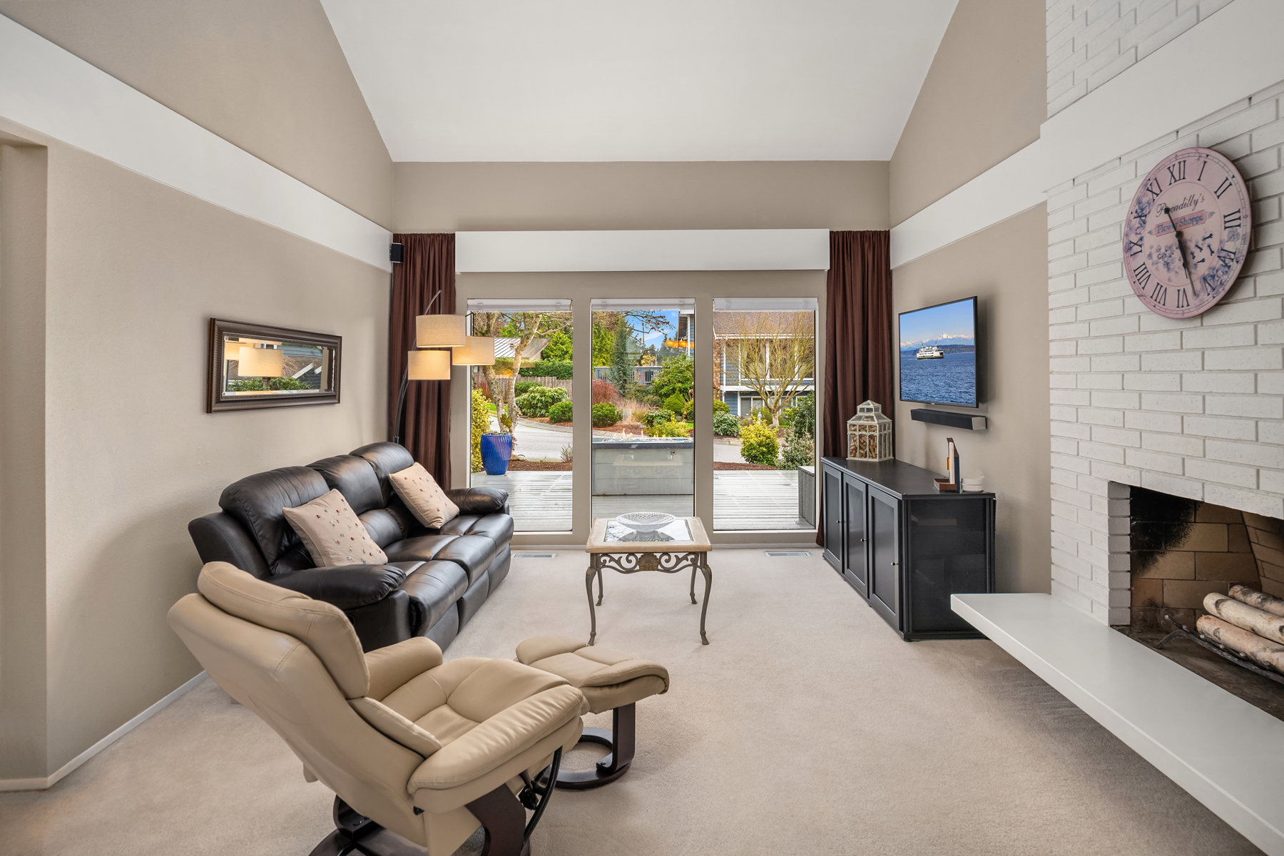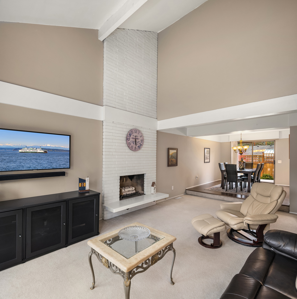 Tucked away on a coveted cul-de-sac in Edmonds esteemed Esperance neighborhood, this contemporary stunner dazzles with dramatic architecture, upscale finishes & captivating curb appeal! Manicured grounds, sprawling wrap-around front porch & covered entry lead to impressive double-door foyer with solid oak hardwoods, soaring ceilings & modern cable-rail staircase with open loft. Brilliantly designed, the 2,420sf, 4 bed, 2.5 bath floor plan features spacious rooms, oversized windows & abundant natural light. Living room with vaulted open-beam ceiling, towering brick fireplace with floating hearth & floor-to-ceiling windows opens to formal dining with glass slider to new deck. Upgraded chef's kitchen with granite counters, cooktop island, double ovens & dining nook with 2nd slider opens to huge family room with fireplace & wall-to-wall windows. Grand primary suite with cathedral ceilings, designer bath with dual-sink marble vanity & pocket-door to walk-in closet. Laundry room with deep stainless steel utility sink. Massive garage with custom cabinetry & new doors with privacy glass accents. Beautifully landscaped backyard with fire pit & storage shed. New high-efficiency furnace, central A/C & more. Short walk to prized schools with rapid access to major highways, medical facilities & downtown Edmonds waterfront!