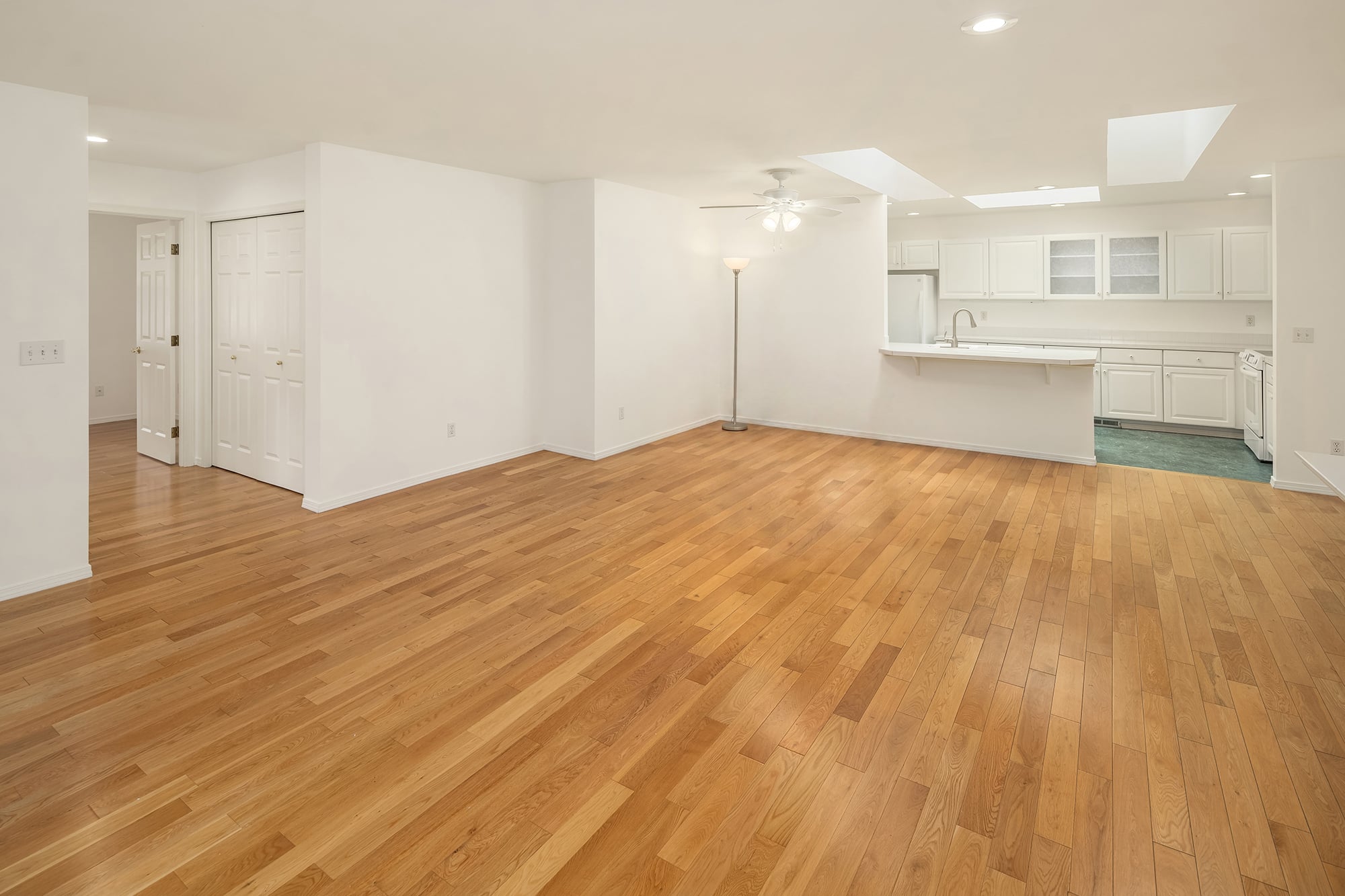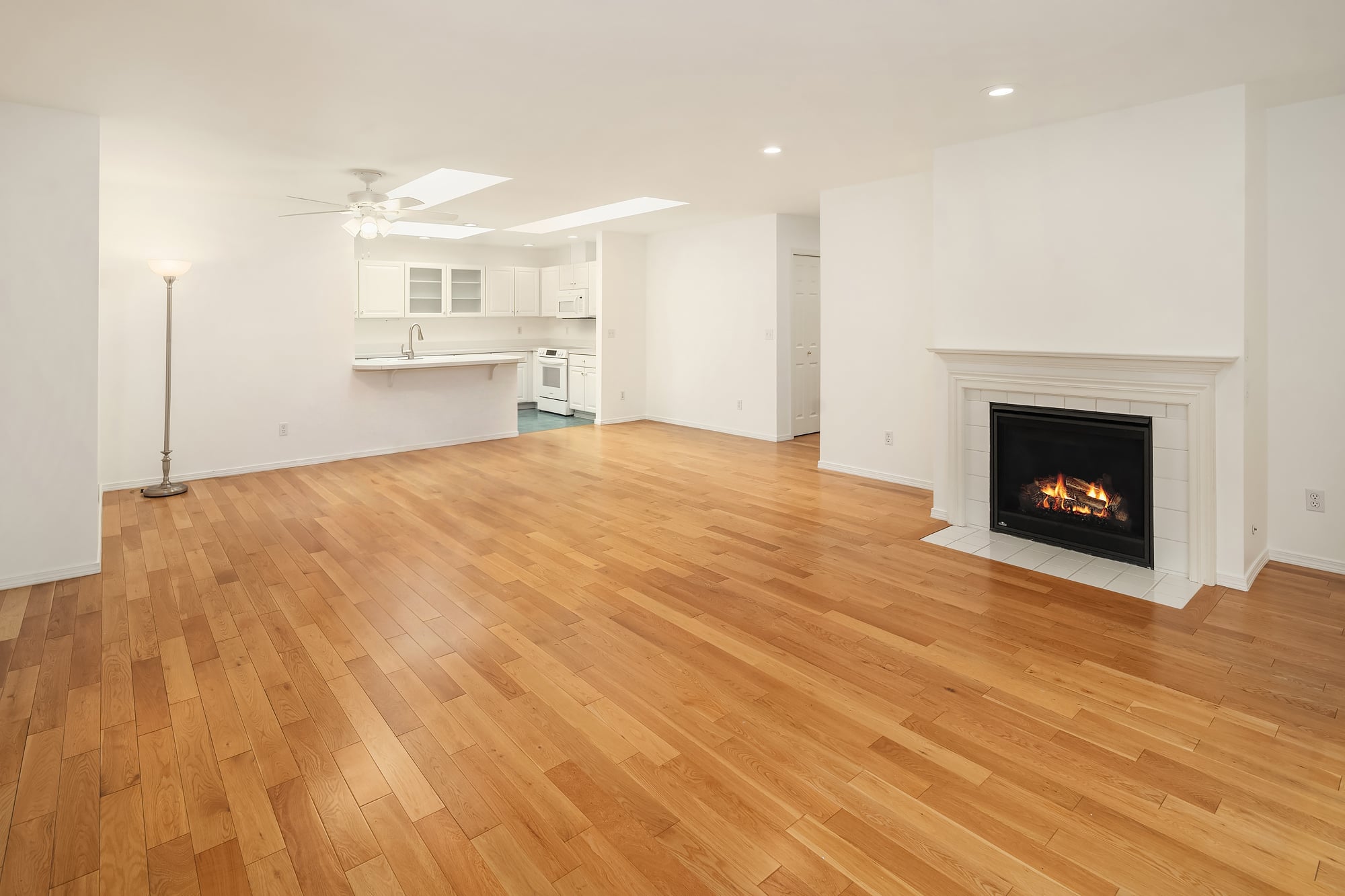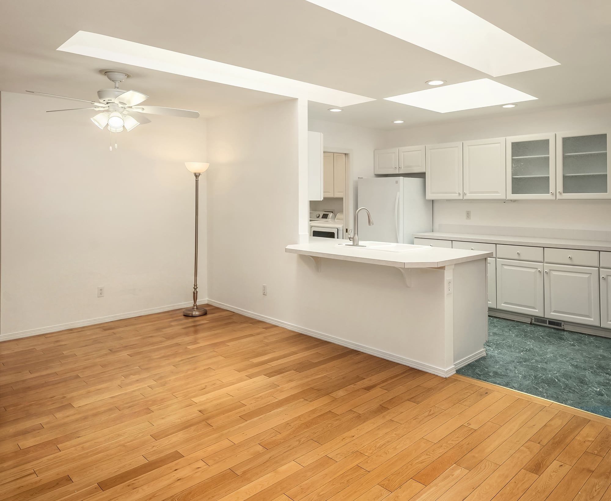 EASY-LIVING LUXURY ~ Tucked away on a quiet cul-de-sac with serene evergreen views in Puyallup's premier 55+ gated community, Willow Gardens, this 1,520sf move-in ready rambler is where the comforts of a single-family home meets the convenience of a low-maintenance condo! Gorgeous curb appeal with covered entry, manicured gardens & brick accents. Clean & pristine, the open concept floor plan features fresh paint & upscale hardwood floors throughout. Welcoming foyer opens to grand living room with upgraded gas fireplace & slider to covered deck. Generous open kitchen with peninsula breakfast bar features soaring skylights flowing into the light-filled dining space. Primary bedroom with recessed lighting, walk-in closet & ensuite with full-size shower & sprawling dual-sink vanity.  Guest bedroom + den/office & full bath with tile floors. Large utility room with cabinetry opens to double garage with storage. Efficient new heat pump/central A/C. Low HOA dues include water/sewer & lawn maintenance. You'll love the peaceful setting & vibrant neighborhood with YMCA at your doorstep & abundant amenities just moments away!