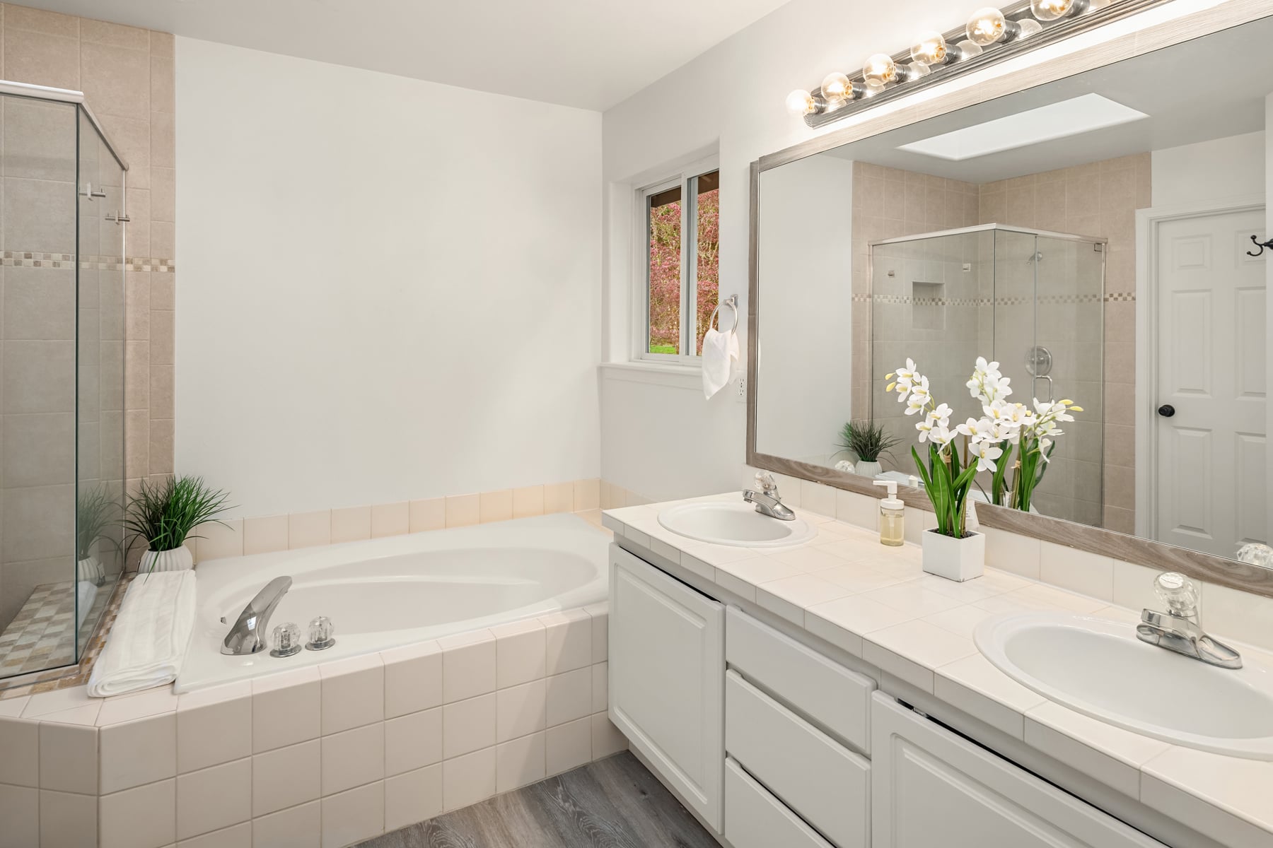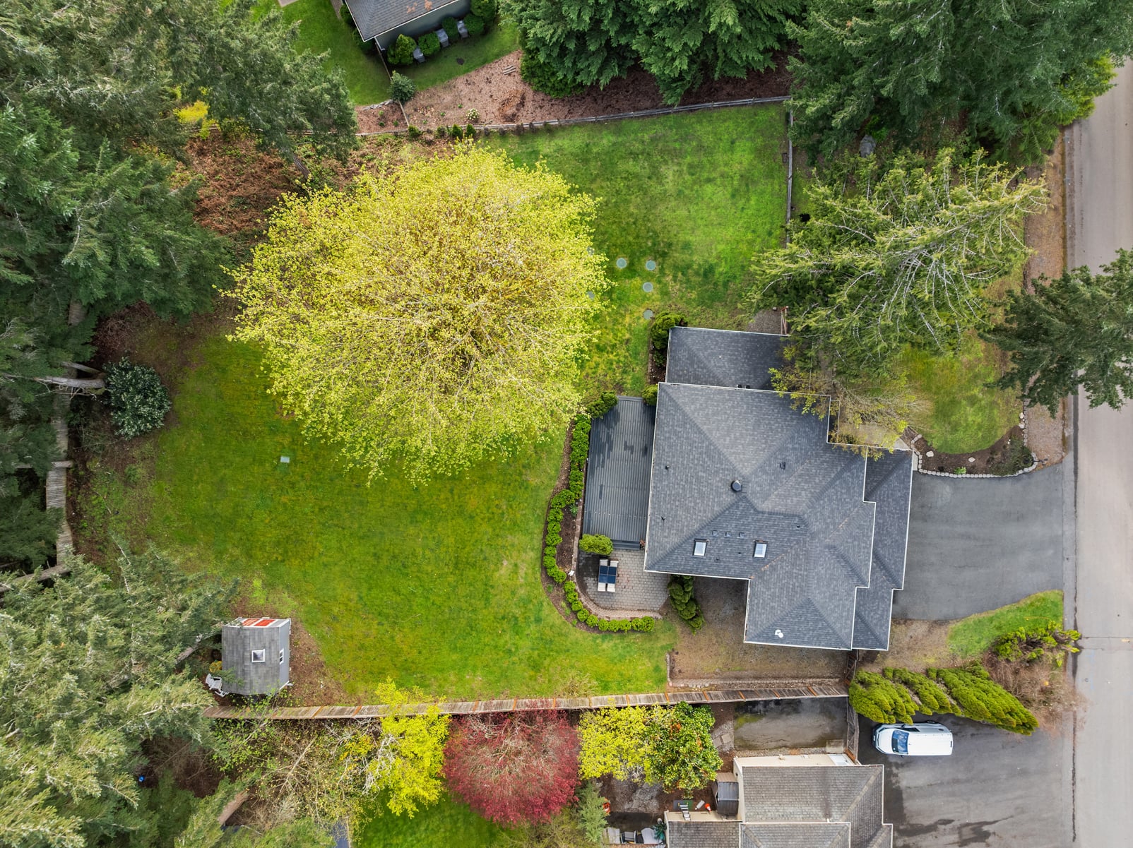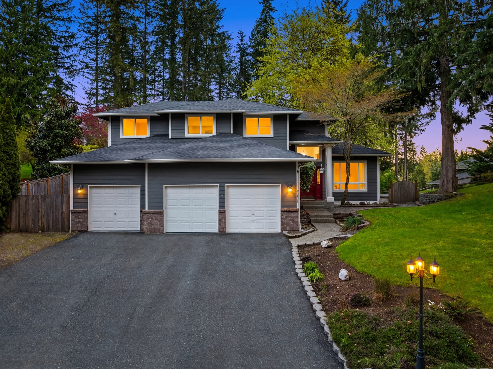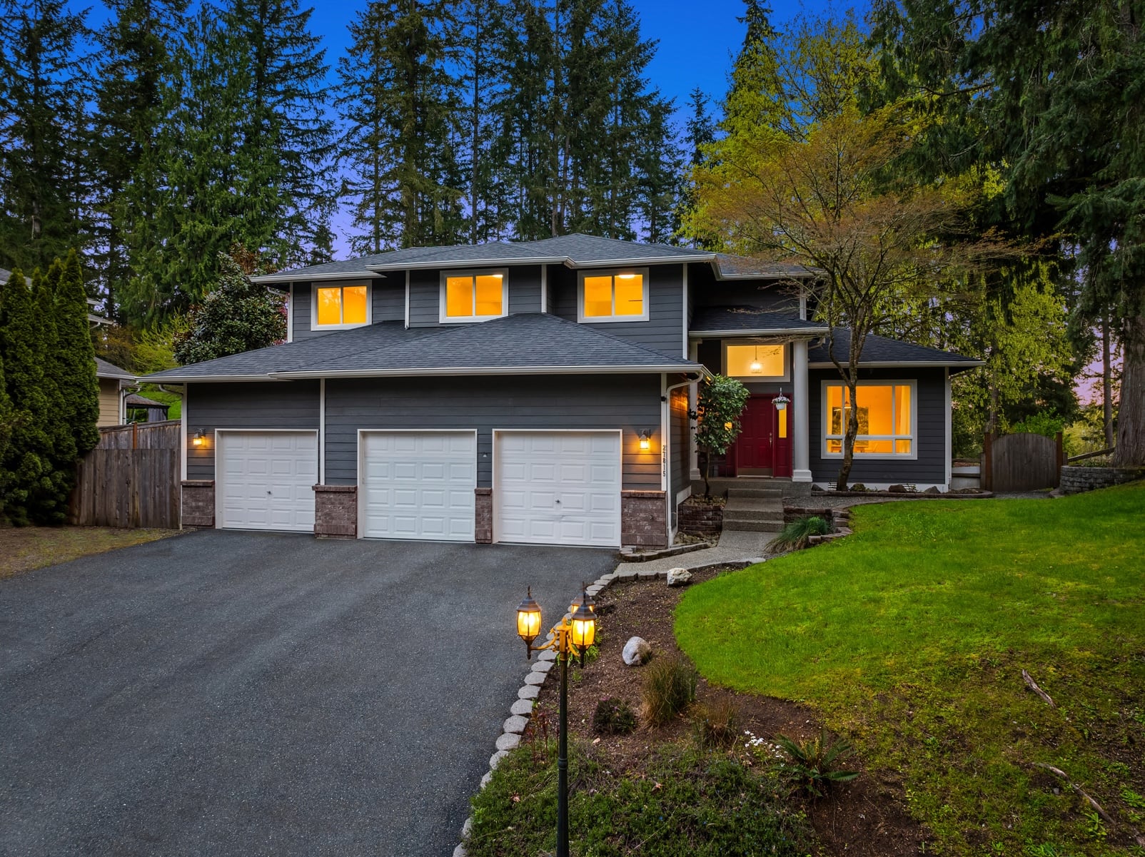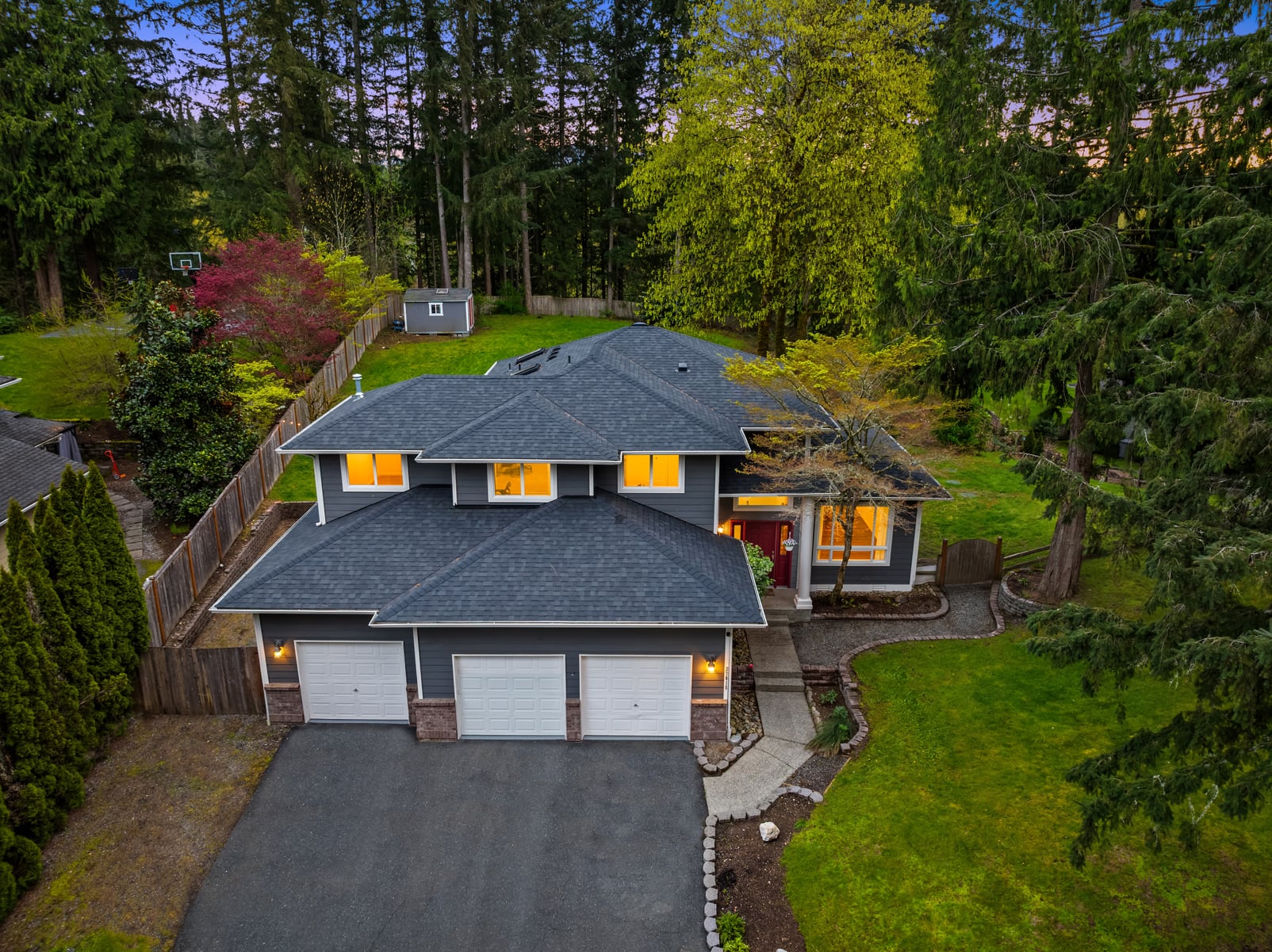 Peacefully nestled on sun-drenched 1/2 acre lot in coveted Quail Creek at Ames Lake, this turnkey two-story stunner is better than new with modern luxury upgrades throughout! New roof, new furnace, Hardie siding, pristine paint, wide-planked hardwoods & so much more. Soaring entry & foyer with open rail staircase. Formal living & dining room with tall ceilings, oversized windows & beadboard wainscoting. Showcase designer kitchen with upscale cabinets, high-end hardware, quartz counters, full-height tile backsplash, farmhouse apron sink & center island bar opens to family room with built-in bookcases & stunning floor-to-ceiling textured stone fireplace with rustic timber beam mantle. Spacious primary suite features picture window with territorial views, walk-in closet with custom organizers & sumptuous 5-piece bath with frameless glass shower & skylight. Upper bonus room/4th bedroom + lavishly appointed hall bath. Main floor den/office with french door & built-ins. Massive 3-car dream garage with utility sink, workbench, cabinetry & ample storage. Colossal backyard with full-length entertainment deck, terraced gardens, paver patio with hot tub hookups & sprawling lawn backed to private evergreens. Quiet cul-de-sac setting across from forested acreage with plenty of parking & space for boat/RV. Welcome Home!